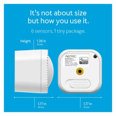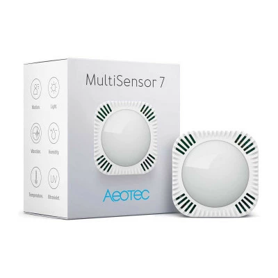 Catch nearly every detail within a room with the Aeotec Z-Wave Plus MultiSensor 7. This six-in-one sensor detects motion, vibration, temperature, humidity, ambient light levels, and UV light levels within a 33ft zone and reports data to your connected Z-Wave controller. The sensor can be programmed to alert you when certain thresholds are reached, or give your real-time information when you check in on your mobile device or web portal. The Multi-Sensor 7 is compatible with all major Z-Wave hubs and controllers.
