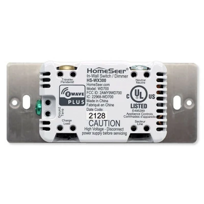 With Z-Wave Plus (700) certification, the switch is essentially compatible with all major Z-Wave hubs and controllers. However, the special LED RGB and multi-tap features of this switch are only guaranteed to be fully supported by HomeSeer controllers/systems. SmartThings users may also take advantage of these features using a special device handler. If you’re using any other brand of controller, these features may be supported but cannot be guaranteed; contact Home Controls or HomeSeer for assistance setting up the LED RGB and multi-tap features.