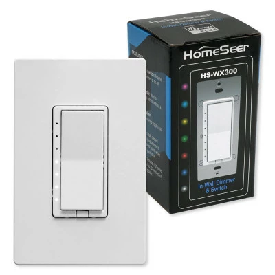 Install the HomeSeer Z-Wave Plus Scene-Capable RGB Smart Dimmer & Switch in your smart home to add Z-Wave dim/on/off control to a light fixture or on/off control to a wired appliance. As part of HomeSeer’s 300 Series, this wall switch features a multi-colored (RGB) LED, which is programmable to illuminate or flash a certain color according to what you want to know about your home’s status. It can also be used to launch home automation scenes and can be installed with or without a neutral wire, making it perfect for older homes.