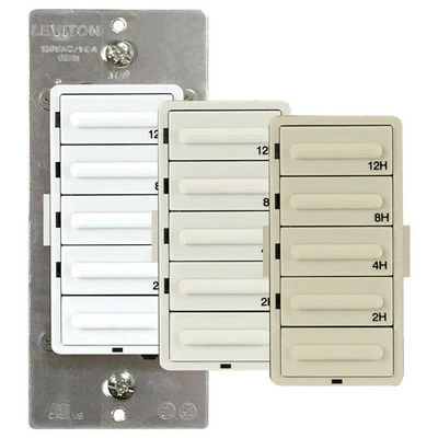 The Leviton Decora Timer Switches offer advanced features, superior accuracy and contemporary aesthetics. Their robust selection provides convenient timed control of lighting and motor loads in homes, offices, schools, hotel rooms and other small commercial applications. An easy upgrade, automatic timers help reduce energy costs, improve security and add convenience. Homeowners can set lights to turn on and off for a lived-in look while they are away, or automate control of heat lamps, pool pumps or bathroom fans. Leviton’s versatile selection includes fully programmable and preset timers in popular styles and colors. All are backed by Leviton’s long history of quality and reliability.
