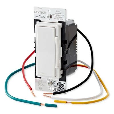 Control connected electrical loads locally or with a smartphone via Wi-Fi with the Leviton Decora Smart Wi-Fi 600W Dimmer (2nd Gen). This Wi-Fi connected dimmer switch commands and schedules lights to turn On/Off and Dim/Brighten according to your schedule or as part of programmed automated scenes. The Smart Wi-Fi 600W Dimmer requires no automation hub or gateway to operate; the switch can be controlled directly from the My Leviton application. An LED indicator light displays current and target light levels.