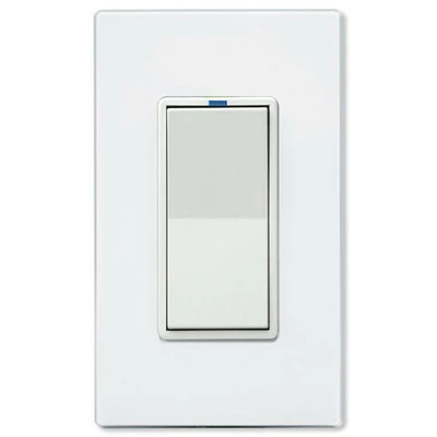 Tapping its paddle style rocker switch will turn on and off the lights while holding it down will fade the lights up and down. Separate light levels (anywhere between 0% and 100%) can be chosen for single-tap and double-tap events. Sixteen different fade rates can be selected – from instant-on to one hour – to give you ultimate flexibility in controlling how fast the lights fade on or off. The dimmer function can also be disabled, turning it into a switch, to allow the WS1E to turn on and off non-dimmable loads such as fluorescent lights and motors.