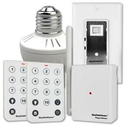 This easy to install, entry-level kit comes with a push button remote with the ability to control various lighting scenarios. You can easily expand on this system with range extenders and additional receivers to really customize your home. The kit includes two deluxe 14-button remote transmitters for greater convenience and more versatile control of devices.Each remote transmitter is small enough to carry in your pocket or purse. Use it to turn on/off all connected devices, control multiple lights in a specified zone, or control a single light. The remote can also be used to dim/brighten connected lights.